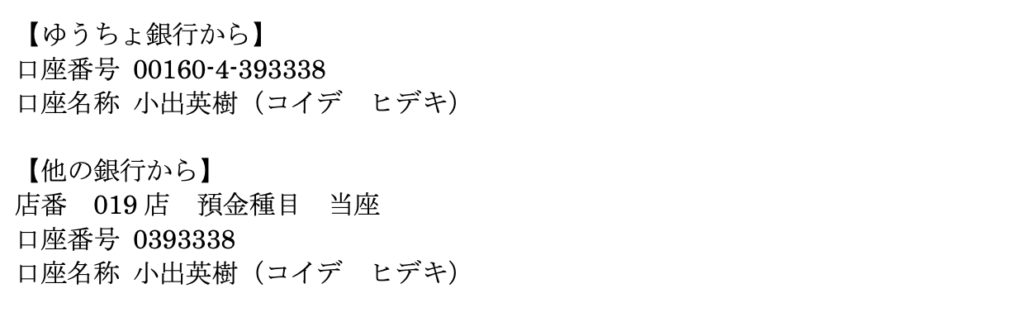 上記の費用以外(年会費等)を払い込まないでください。(年会費払込の口座とは別です)